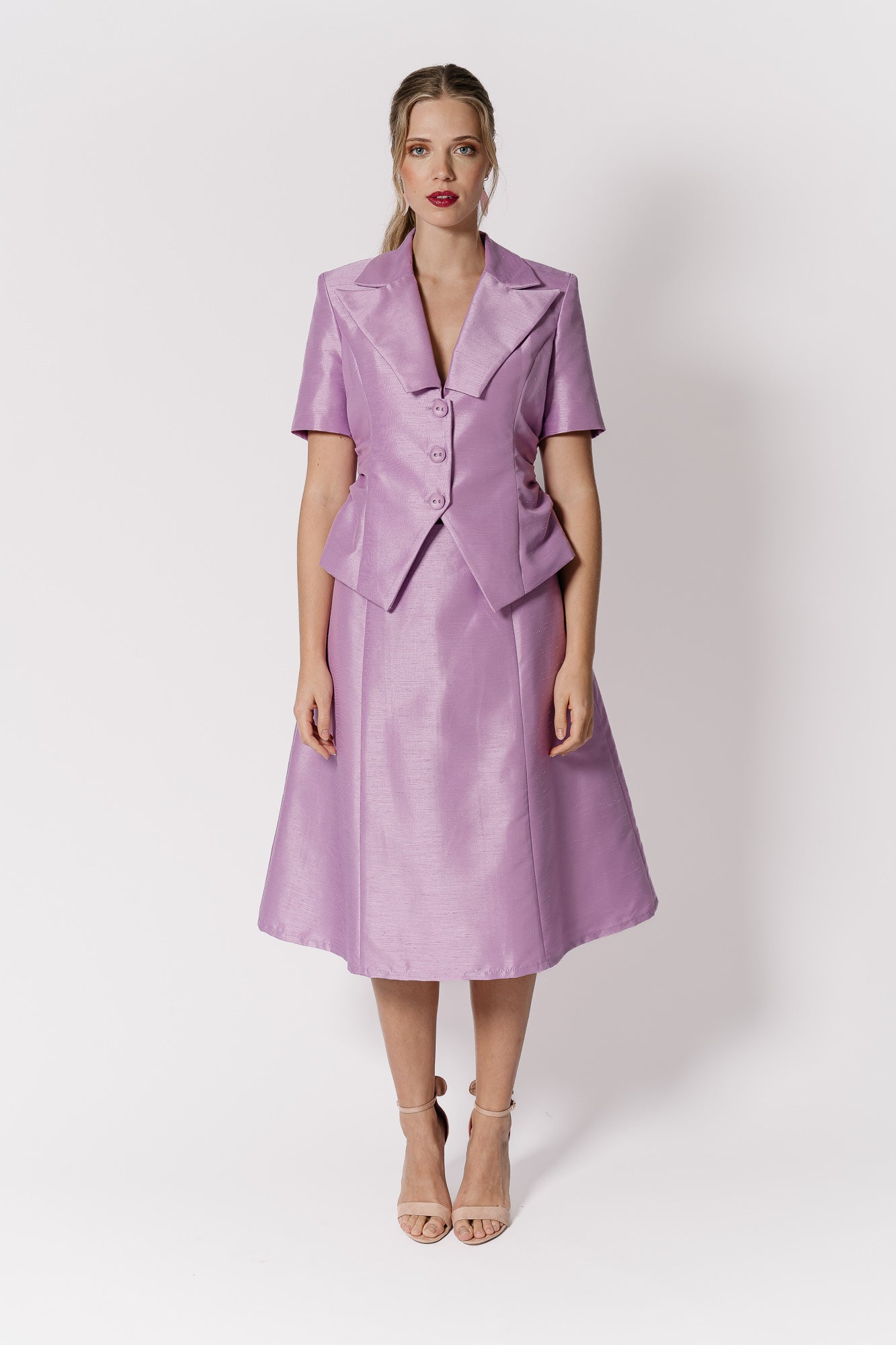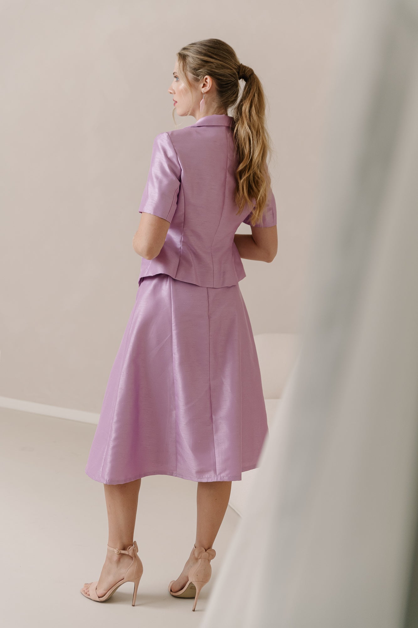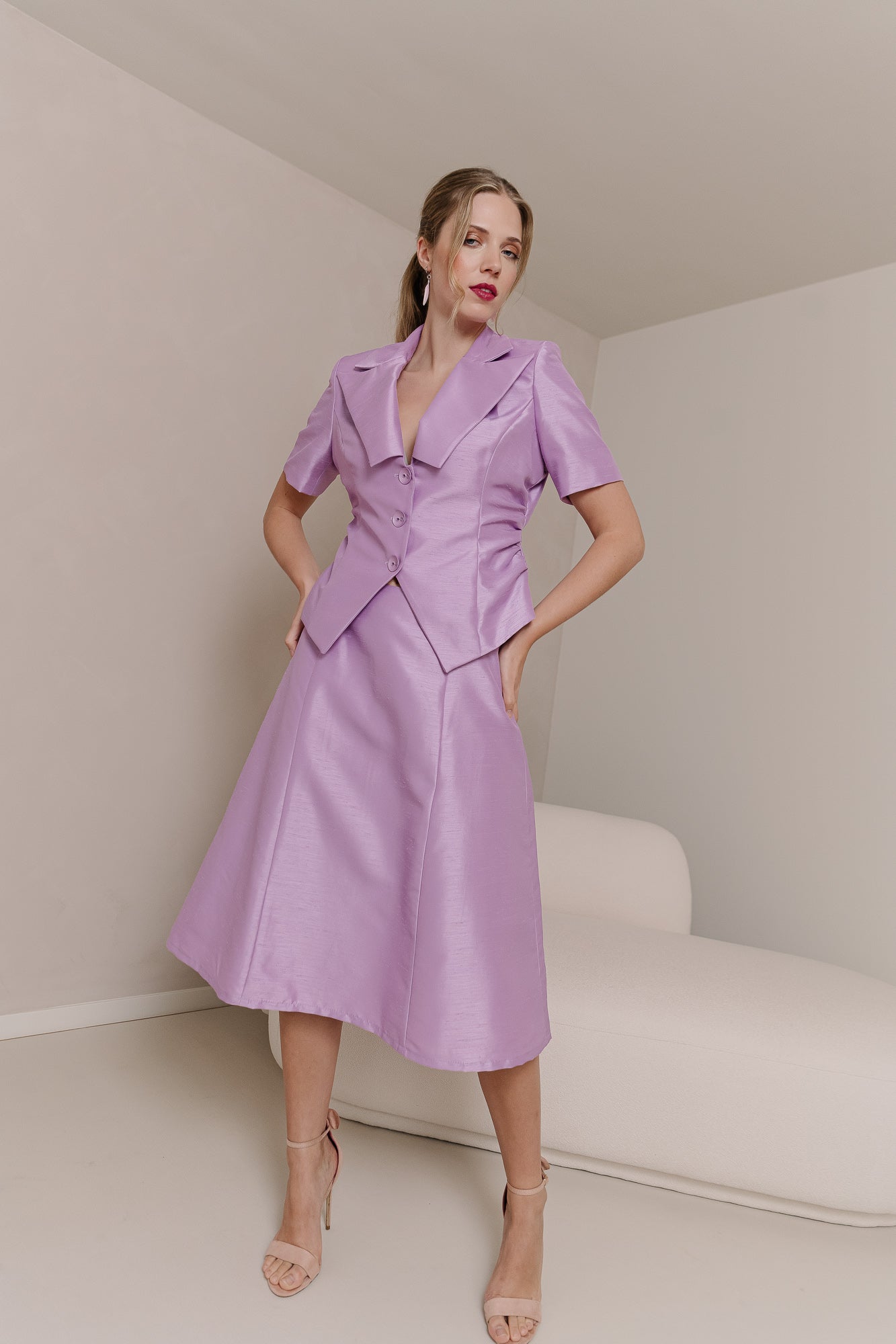 Transform your wardrobe with the stunning and sophisticated 'Aria' two-piece set. This ensemble is designed to take your style to new heights, featuring an A-line skirt that boasts flattering vertical seams and a hidden zipper at the back for a sleek finish. Fully lined for ultimate comfort, this skirt moves gracefully with you, making it perfect for any occasion.